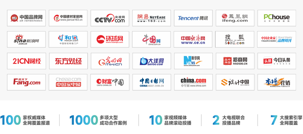 2兩大電視頻道投播 · 7大搜索引擎全面覆蓋 · 10多家視頻媒體展播 · 百家權威媒體全年報道